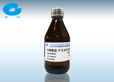聚丙烯酰胺凝膠電泳是以聚丙烯酰胺凝膠作為支持介質(zhì)的電泳方法。在這種支持介質(zhì)上可根據(jù)被分離物質(zhì)分子的大小和分子電荷的多少來分離,幾乎所有的蛋白質(zhì)電泳分析都是在聚丙烯酰胺凝膠(Poly Acrylamide Gel Electrophoresis, PAGE))上進(jìn)行的。丙烯酰胺是配制聚丙烯酰胺凝膠(PAGE 膠)和 SDS-PAGE 凝膠的主要成份,是生命科學(xué)實(shí)驗(yàn)室必備的試劑。30%丙烯酰胺(30% Acrylamide,簡(jiǎn)稱 AcryBis)是丙烯酰胺(Acrylamide)和甲叉雙丙烯酰胺(Bisacrylamide)的混合物,其中丙烯酰胺與甲叉雙丙烯酰胺的比例為 29:1。本產(chǎn)品采用優(yōu)質(zhì)進(jìn)口試劑配制而成,儲(chǔ)存穩(wěn)定,為生物學(xué)實(shí)驗(yàn)室最常用的儲(chǔ)備試劑之一。