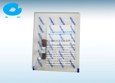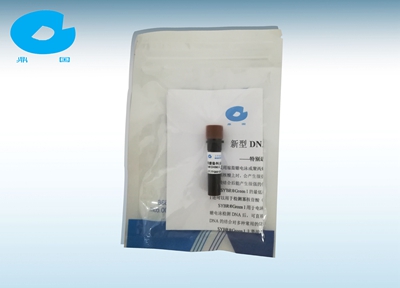 采用瓊脂糖電泳或聚丙烯酰胺電泳方法檢測雙鏈 DNA 時(shí),SYBR®Green I 是最靈敏的熒光染料,當(dāng)其結(jié)合到核酸上時(shí),會(huì)產(chǎn)生很強(qiáng)的熒光及高量子產(chǎn)額,DNA/SYBR®Green I 復(fù)合物的量子產(chǎn)額約為 0.8。由于與核酸結(jié)合后能產(chǎn)生很強(qiáng)的信號,背景極低,并且對核酸的親和力高,因此 SYBR 染料可在低濃度條件下使用。SYBR®Green I 的最低檢出限:20pg DNA(254nm);60pg DNA(300nm 紫外透射);此外,SYBR®Green I 還可以用于檢測寡核苷酸(1-2ng,300nm 紫外透射),比 EB 靈敏 20 至 100 倍。